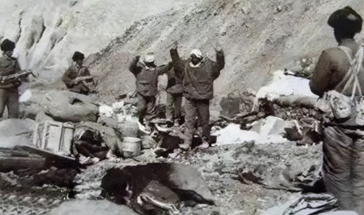 1962年10月20日,中国部队过线攻印度阵地,战斗从早开始,印度士兵高山用机枪还击,中国推进快,印度阿克赛钦损失数千士兵,中国得三万八千平方公里土地。冲突11月21日结束,对峙持续。巡逻常摩擦,士兵山路走,背重物,小推撞。